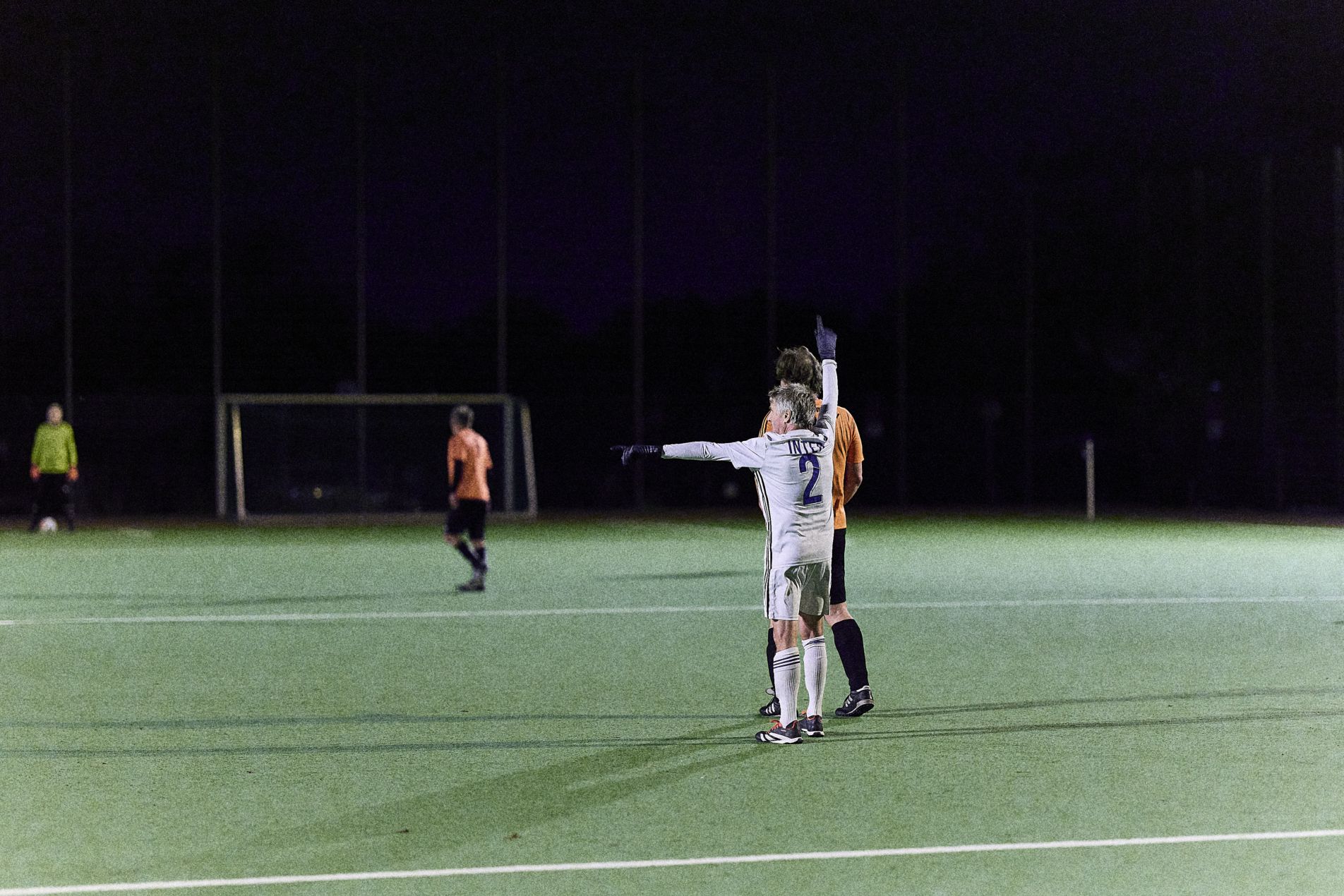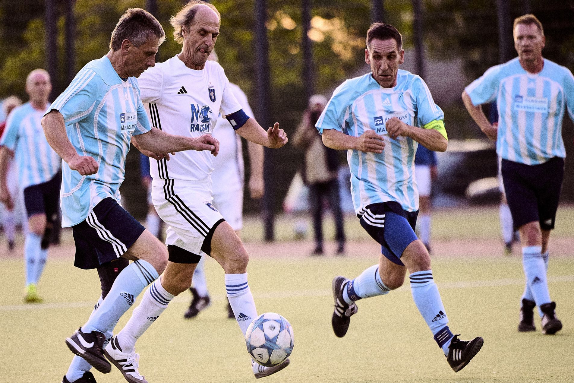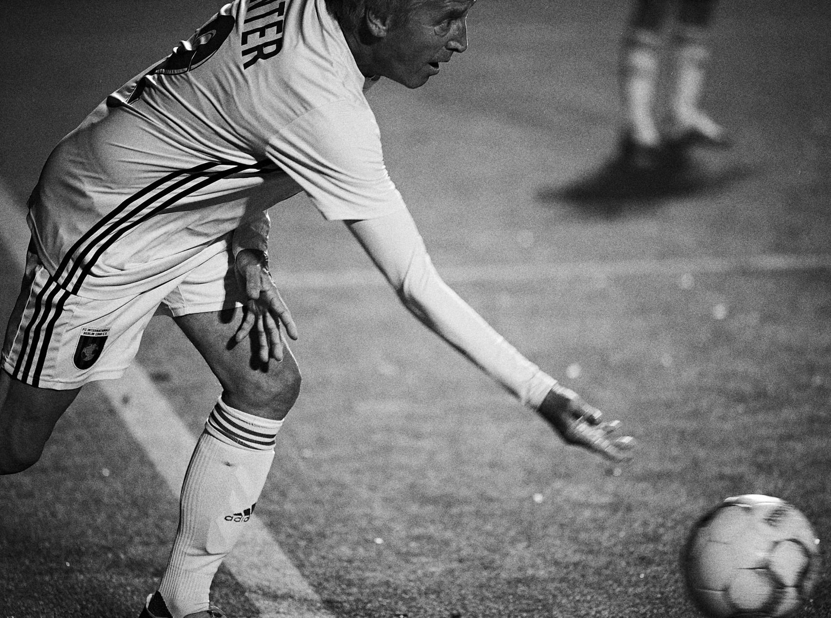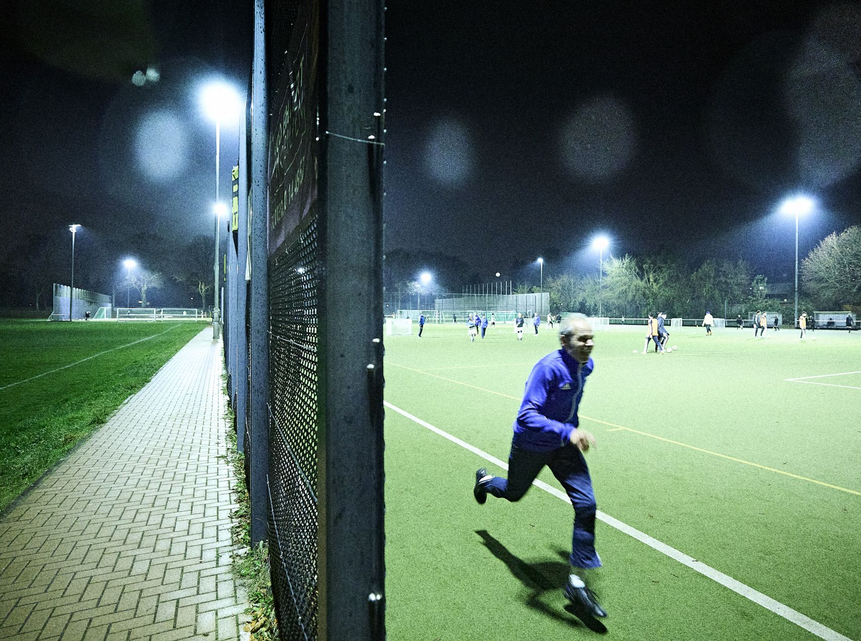 Herren über 60 in kurzen Hosen. 6 + 1 auf Kleinfeld. Flutlicht. Tannenbaum.