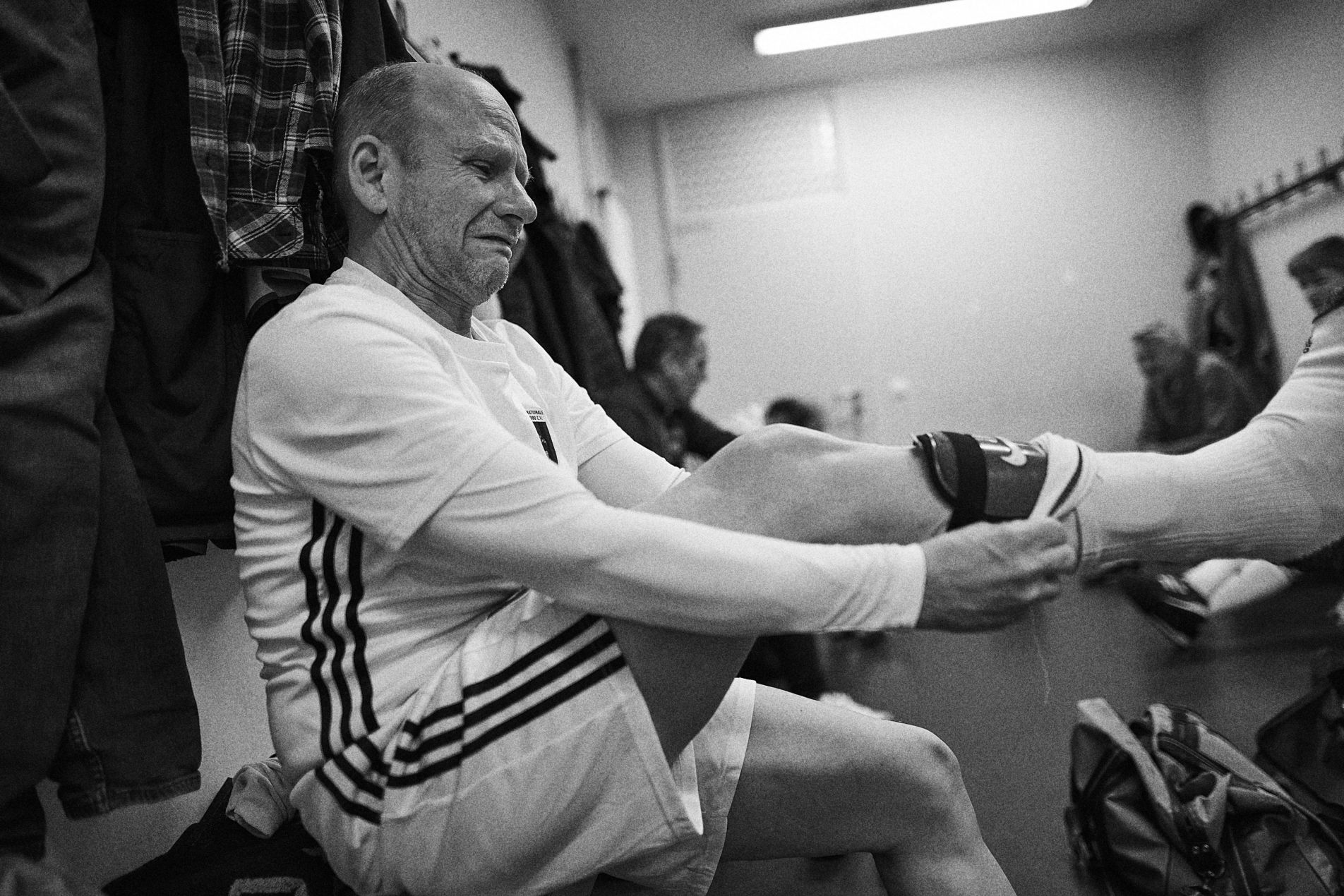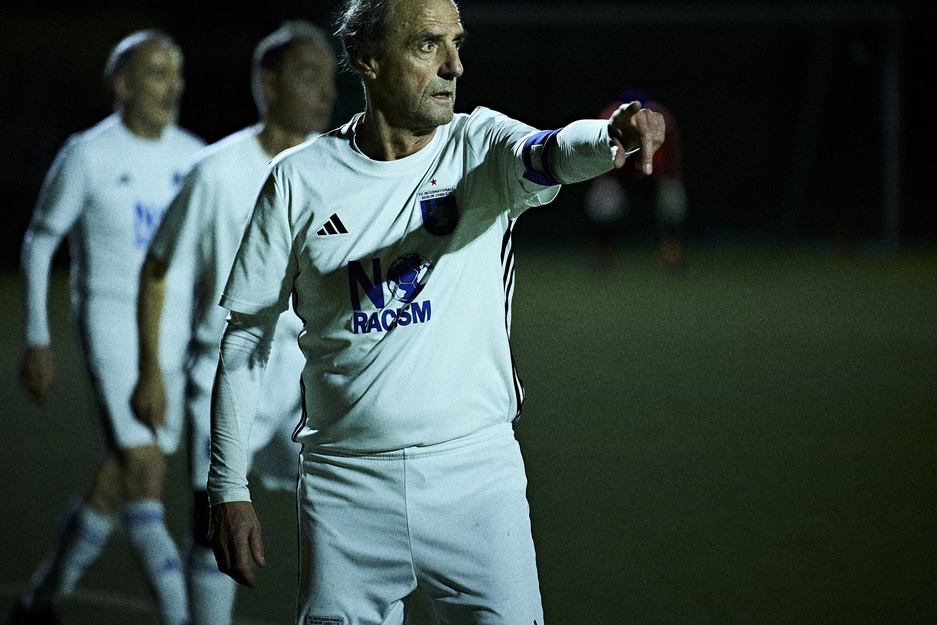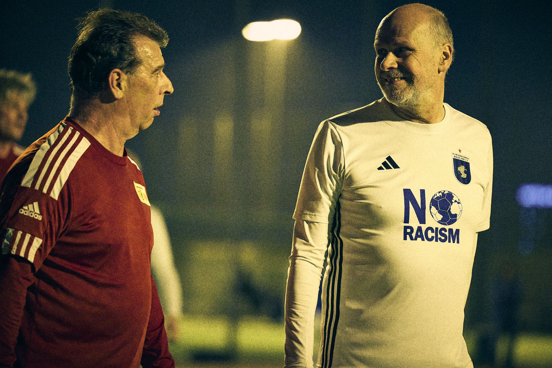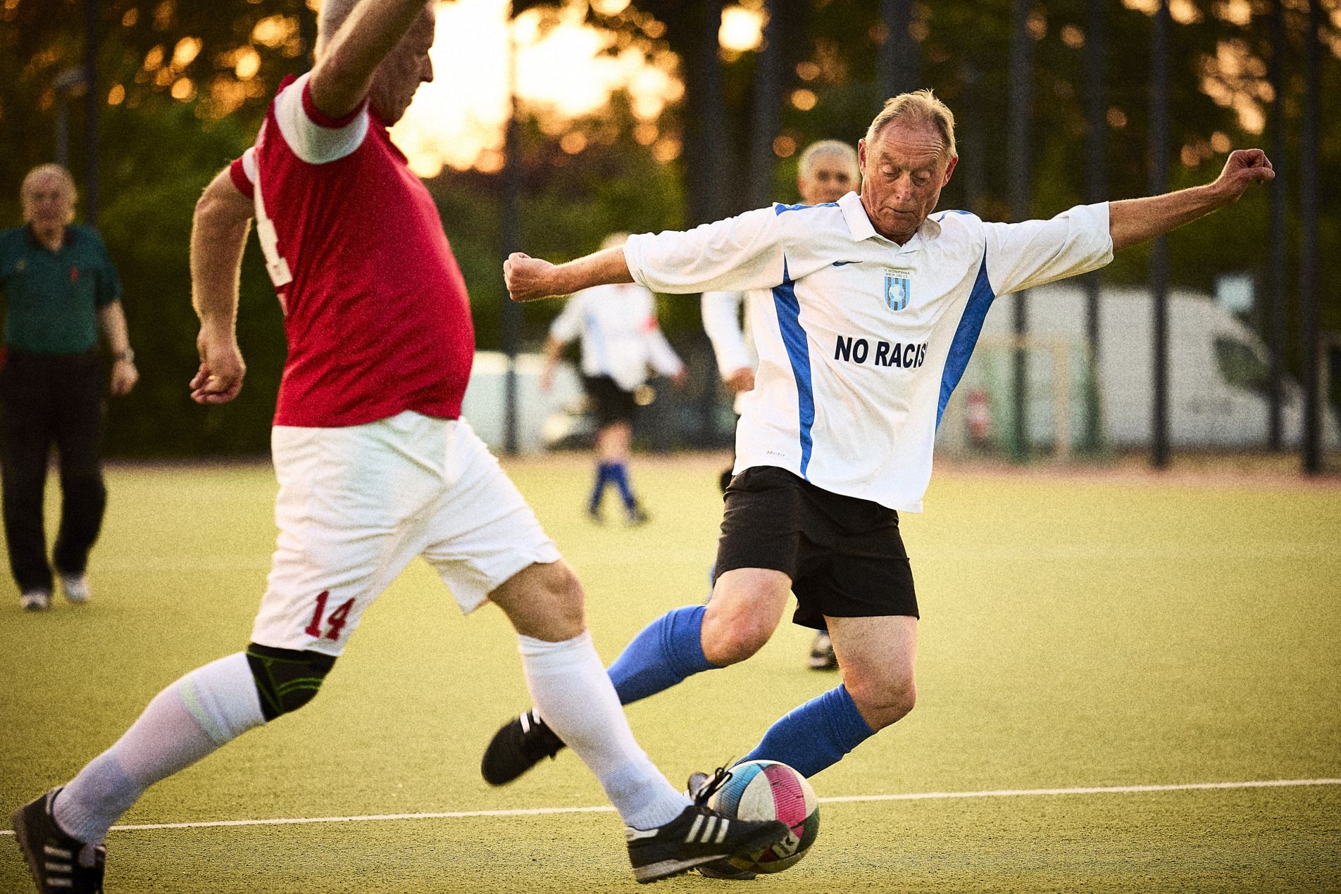 Herren über 60 in kurzen Hosen. 6 + 1 auf Kleinfeld. Flutlicht. Tannenbaum.